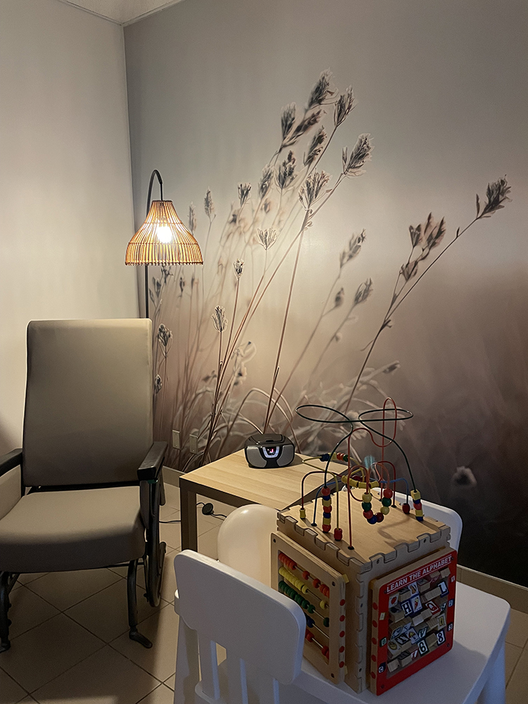 La Fondation investit dans ce projet afin de soutenir concrètement le bien-être des familles et de favoriser des environnements de soins humains, sécuritaires et adaptés aux besoins des tout-petits. Grâce à un investissement de près de 6 000 $, les salles ont été modernisées : peinture fraîche, ajout d’un micro-ondes, d’une chaise haute, de mobilier pour bambins, installation d’une murale et d’un éclairage apaisant.