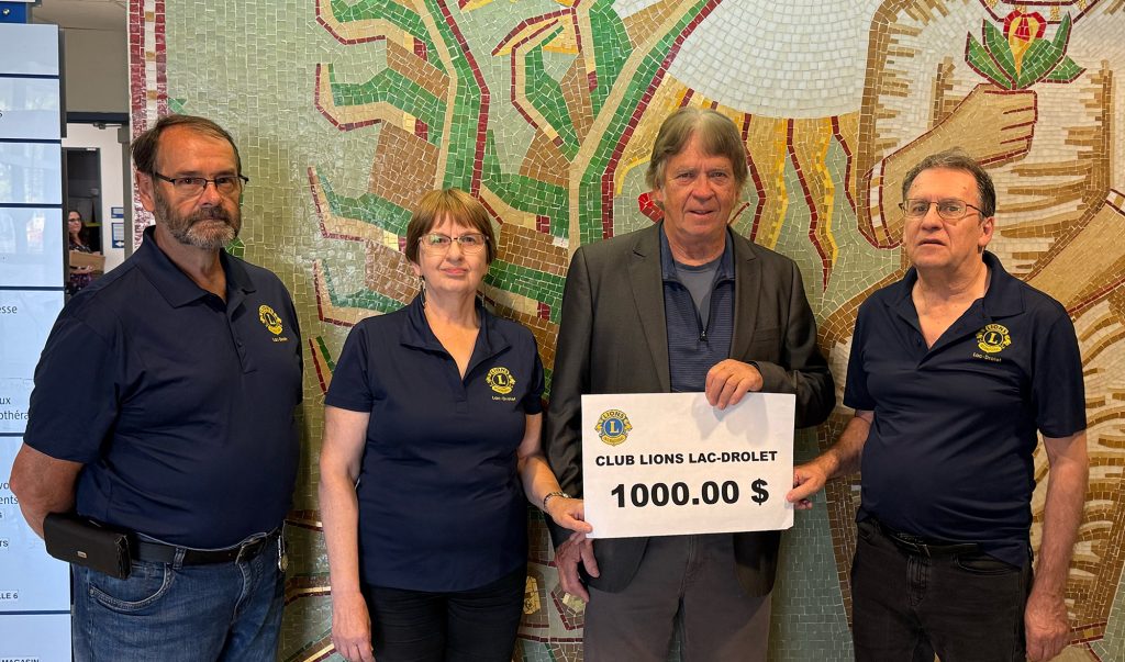 Fidèle donateur année après année, le Club Lions de Lac-Drolet démontre encore une fois son engagement indéfectible envers le mieux-être de la population locale. Ce soutien précieux contribue directement à l’amélioration des services de santé offerts dans notre région pour l’établissement de santé de Lac-Mégantic.